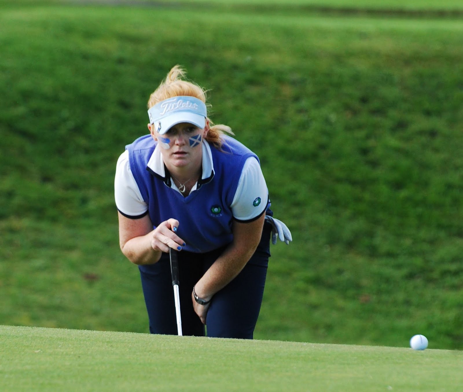 Teenager Carly Booth (pictured above today by Cal Carson Golf Agency) set the tone for Scotland's rally in the singles by winning the top singles against a British title-holder.